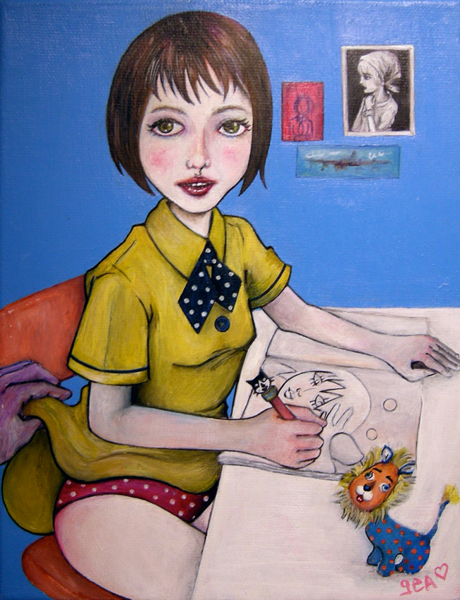 Nach Jahren sucht sie immer noch nach Geborgenheit in ihrer Kunst. Die Hälfte ihrer Bilder sind eine Art Tagebuch in Metaphern. Sie selber sagt über ihre Bilder, dass sie nicht male, um die Leute zu schockieren sondern eher, um ein bisschen Dampf ab zu lassen. Sie mache die Bilder hauptsächlich für sich selbst und um die Leute zu ehren, die sie inspirieren.