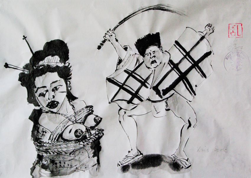 Mike Spike Froidl aus Berlin lernte 8 Jahre bei dem Zen-Meister K.Kuwara die hohe Kunst der Kalligrafie, die er mit westlicher Kunst verkreuzt. Sein neues Projekt sind Shunga, (jap. 春画, Frühlingsbilder) ist der japanische Begriff für Gemälde, Drucke und Bilder jeder Art, die in expliziter Weise sexuelle Handlungen darstellen. Als alter Punk wird bei seinen Shunga 2.0 natürlich Humor und Politik einen hohen Stellenwert einnehmen.
