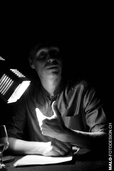 Vernissage: Freitag, den 24. Juli 2009 ab 20:00 Uhr in Edi‘s Weinstube in Zürich. Ab 24.00 Uhr Mitternachts- Lesung des Künstlers im Kino Stüssihof (gleich nebenan).